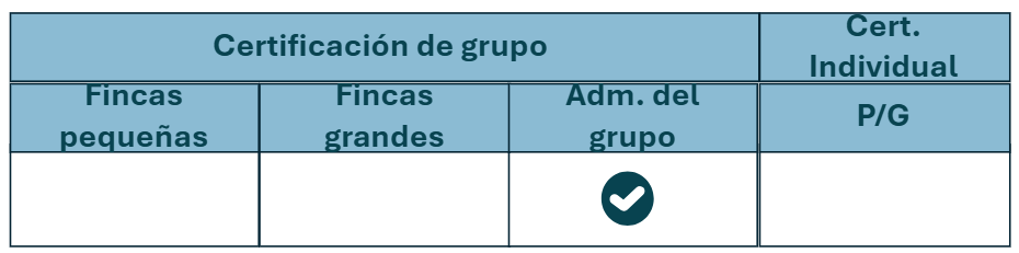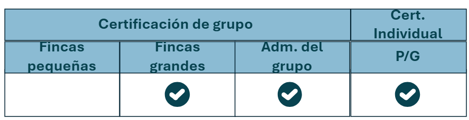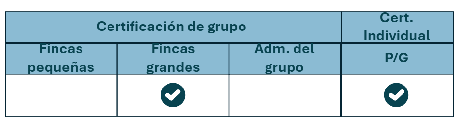 Para las fincas certificadas individualmente y para las fincas grandesque forman parte de un grupo: