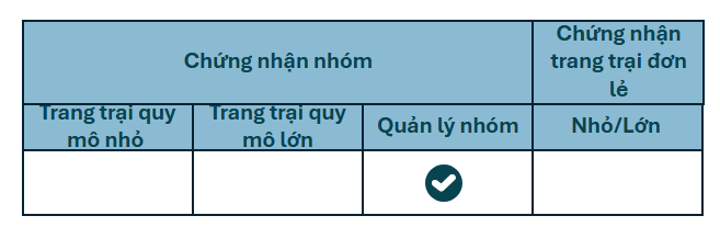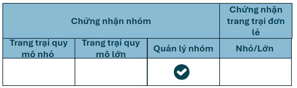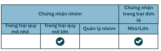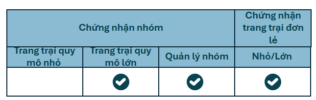 Đối với các trang trại được chứng nhận riêng lẻ và các trang trại quy mô lớn thuộc một nhóm: