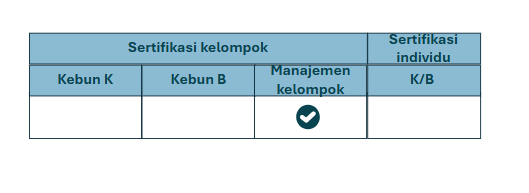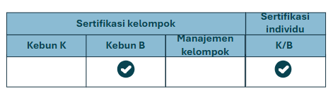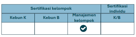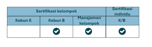 Untuk kebun yang bersertifikasi secara individu dan kebun besar yang menjadi bagian dari kelompok: