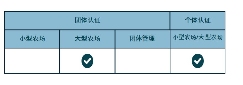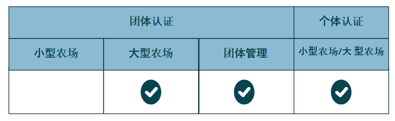 对于获得单独认证的农场以及作为团体一部分的大型农场: